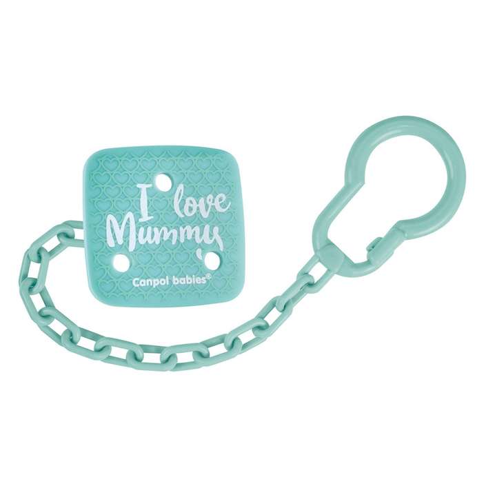 Синџирчето е со практична тока која лесно и безбедно се закачува на облеката на децата. Синџирчето ја штити цуцлата од губење, паѓање, вал…