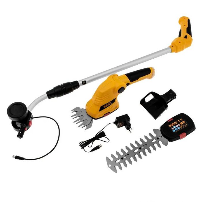 адаптер блок – 1, Модул за сечење трева што се вади брзо – 1 , Модул за сечење за тримери за жива ограда со брзо ослободување – 1, Полнач – 1 , Телескопска рачка со кол, Гаранција : 12 месеци