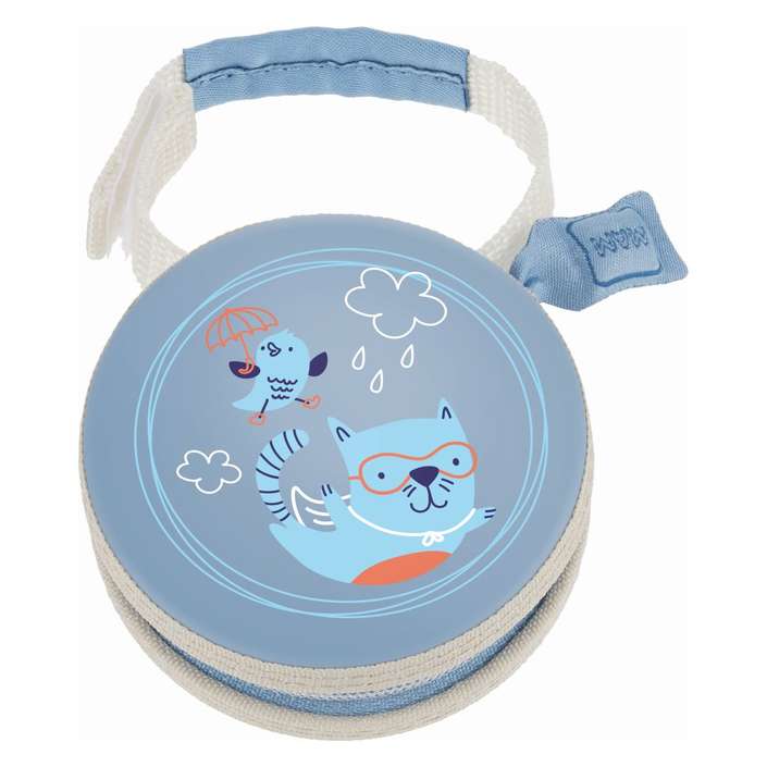 Практична торбичка во која што може да се чуваат две цуцли. Едноставно се прицврстуваат на торбата за приборот за …